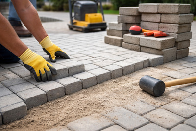 A pavimentação com piso intertravado utiliza blocos pré-moldados de concreto assentados manualmente, sem uso de argamassa, formando um revestimento resistente, durável e com excelente acabamento estético para áreas externas.